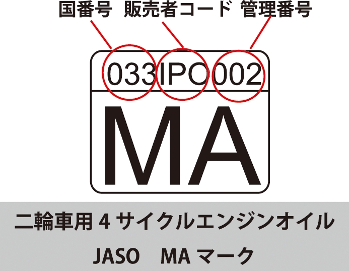 日本自動車規格協会(JASO)は特定のロゴマークを許可された潤滑油の容器にマークと認可番号を表示することが出来ます(イラスト参照)