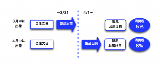 ※3月中にご注文いただいた製品は3月中の出荷を予定しておりますが、諸事情により4月以降の出荷となる場合は新税率分の差額をご請求させていただく場合がございます。